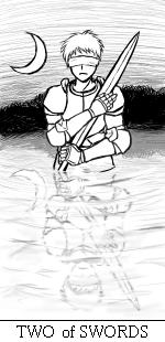 ・・・これは、あの時、流浪の占い師が言っていた、{剣の2}のカードの絵だわ。
