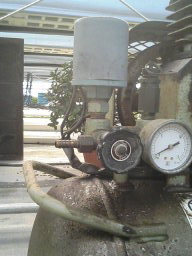 コンプレッサーは、井戸水の濾過器の圧力調節に使われているので、分岐させる必要があります。