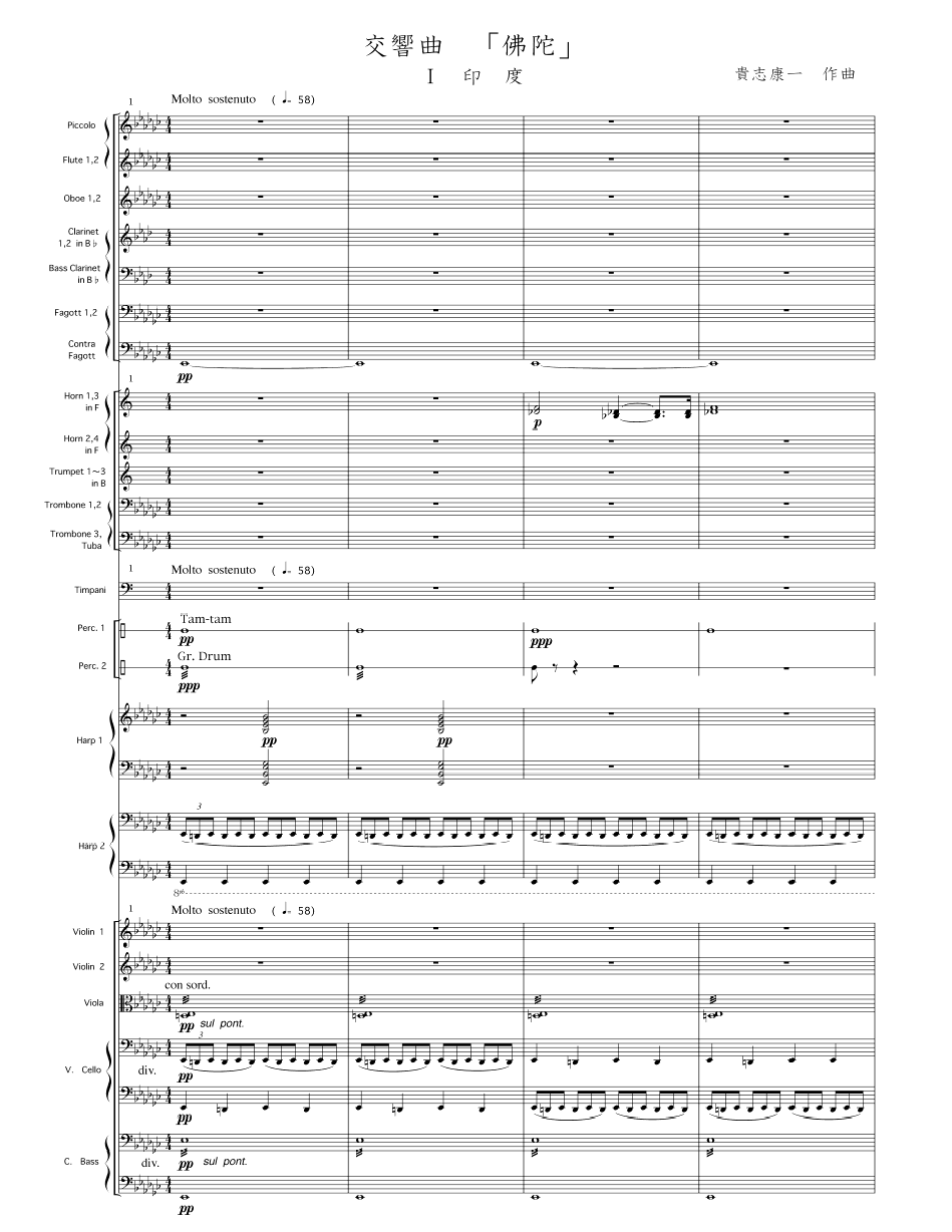 貴志康一 交響曲「佛陀」第1楽章冒頭 (浄書譜/作成試作)