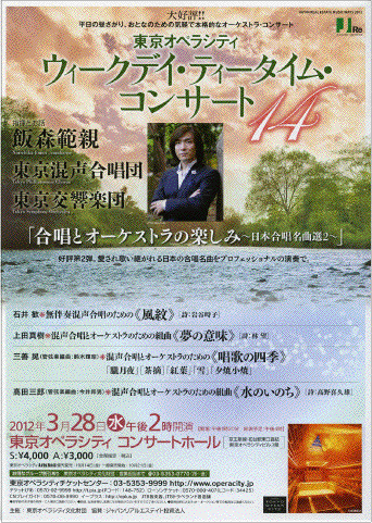 イベントの一環として演奏されたため第1、3、5曲のみの抜粋だったのが残念だが、首都圏における「水のいのち」管弦楽伴奏版の記念すべき初演。江上氏の合唱・管弦楽を把握した指揮のもと、共感あふれる演奏を聴かせてくれた。