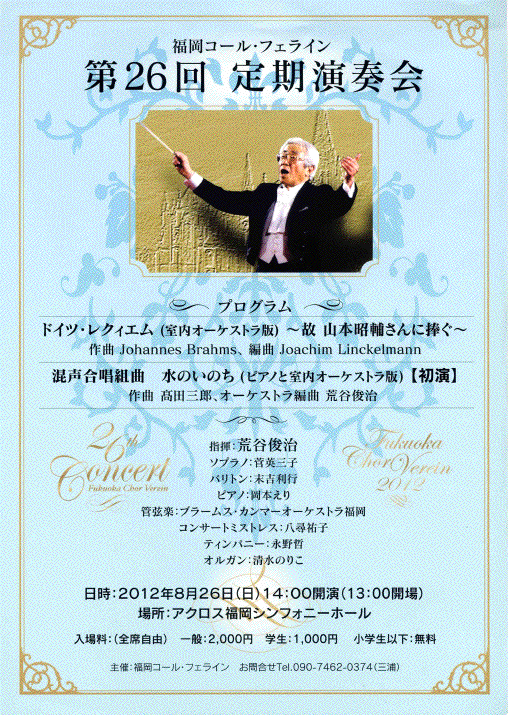なおこのコンサートでは冒頭に、高田三郎「やまとのささげうた」を小松一彦氏が弦楽伴奏に編曲した版が演奏された。