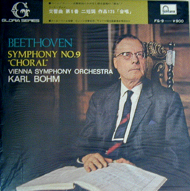実はこのベーム/ウィーン交響楽団の「第九」も、その1枚。歌手陣はステイヒ・ランダル、レッセル・マイダン、デルモータ、シェフラーという当時のウィーン楽壇を代表する、懐かしい顔ぶれである。なおこの録音は60年代の末頃、フォンタナという廉価盤レーベルで疑似ステレオで再発売され、900円というそれまでに無い低価格とジャケットのベ−ムのインパクトある写真の効果もあって、売れに売れた事を私はよく覚えている。(もっともこの再発売のジャケット写真は、ずっとあとのベームが年を取ってからのもので、録音自体は1952年頃、ベーム50代半ばの頃のものなのだから、いささか納得行かない部分もあるが・・・)