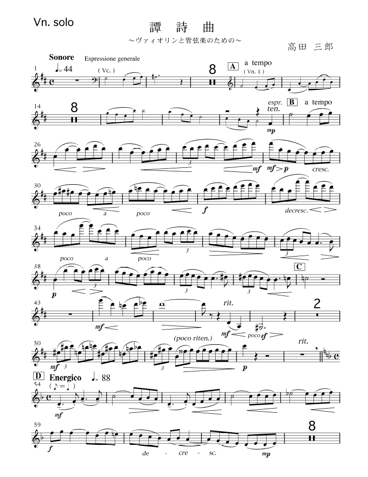 高田三郎/ ヴァイオリンと管弦楽のための譚詩曲 (1944)