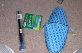 お誕生日プレゼントです。なんか微妙ぅなんですね。スリッパに箸にリップクリームですからね・・・・・・