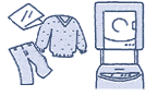 衣類には素材、織り方、厚さ、形態によってシワがひどくついたり、縮んだりして、乾燥に向かないものがあります。乾燥前に衣類の取扱絵表示をよく確認します。