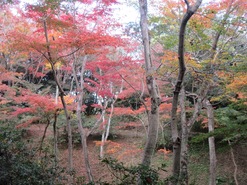 <令和5年の紅葉情報> 2 令和5年12月7日(木)現在の、紅葉谷及び拝殿前の状況です。最高の見頃となりました。