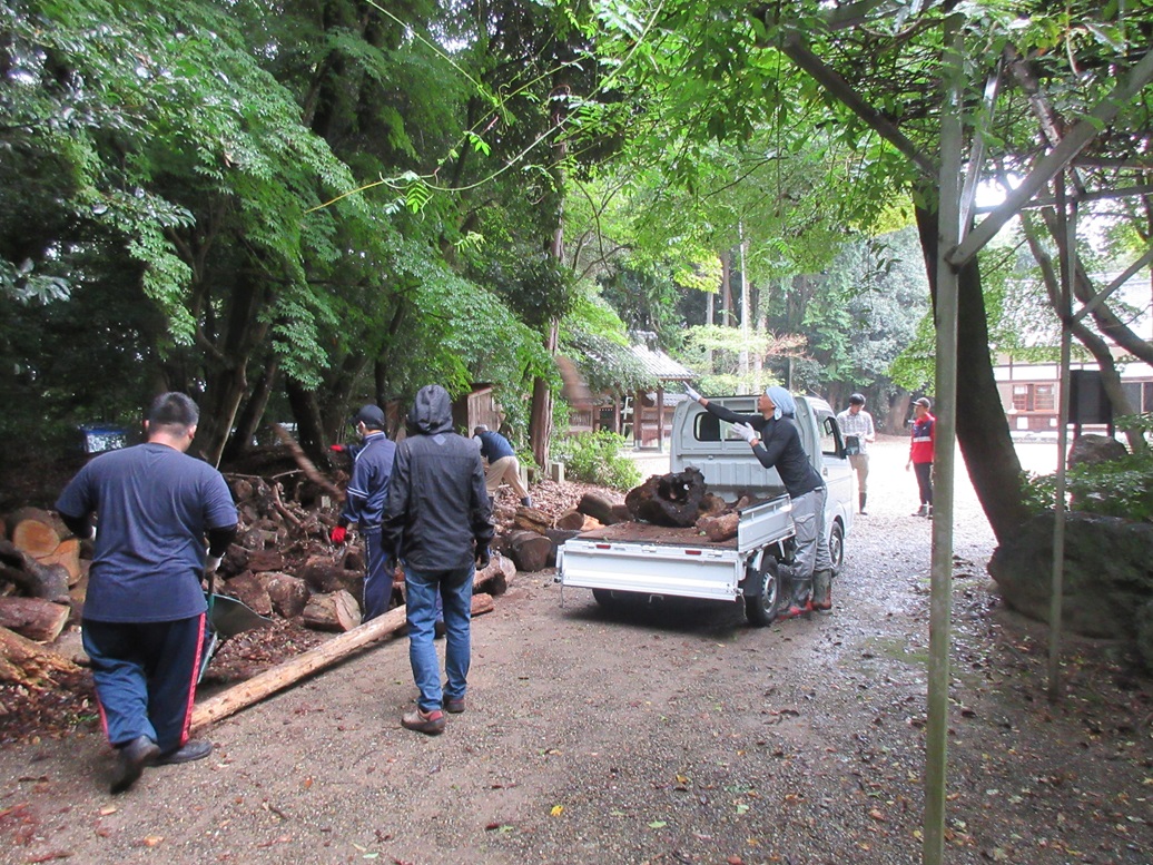 2 令和7年10月19日(日)、今年42厄歳及び来年42厄歳の方々により、正月かがり火の集積準備をしていただきました。