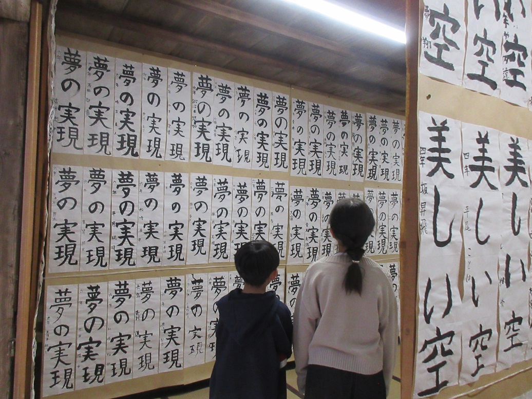 そして、元旦の新年長寿会のご祈祷、書き初め展の風景です。