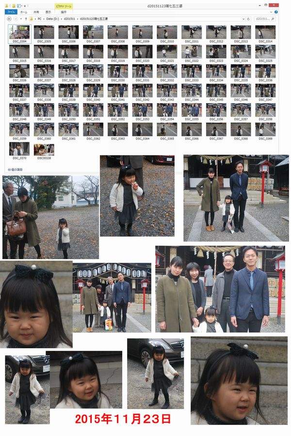 ただ、カメラは普通に、七五三本人、3人の家族、爺婆が両家入り、。