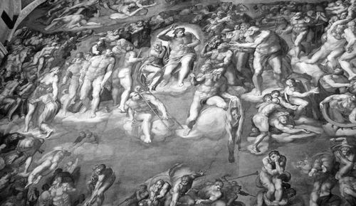 キリスト右下のよれよれの皮の人はミケランジェロ自身といわれています。