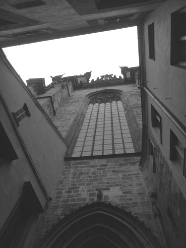 境界の廻りは店舗や住宅などの建物で被われて正面玄関が広場から見れない不思議な教会です。