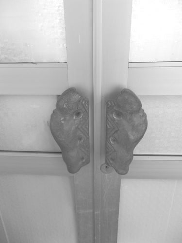 玄関棟と接待用主棟をつなぐ廊下部分に跳ね上げ窓があります。 (2022.5.18)