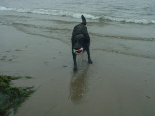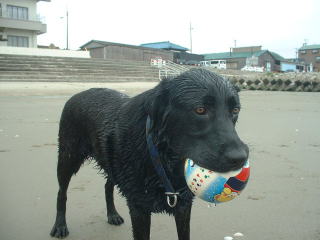 6月11日海に遊びに行ったよ。ボールを追いかけて海に飛び込んだよ。おぼれそうになったけどなんとか持ってきました。セーフ!