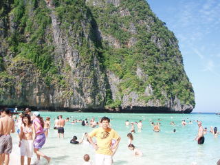 ピピ島。すごい人でおどろきました。高速艇に乗っていきましたが、同乗した外人が、フランス語で「日本人でいっぱいだぞ。」と、いっとったのに少し腹が立ちました。実際には、日本人は、ほとんどいませんでした。国際色豊か。あらゆる人種の人がここにいます。