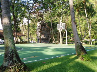 ホテルの中には、いろいろなスポーツができる施設があります。バスケット、アーチェリー、テニス、ゴルフ、ロッククライミング、チェス、バレー、サッカー、ペタンク、驚いたことに、フィットネスクラブまであるのです。ついテニスをやってしまいました。