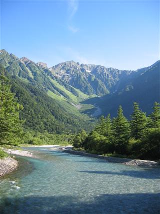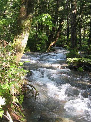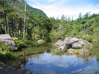 ご来光を見た後6時30頃に上高地に到着 村営の休憩所で朝食を済ませ 12時出発まで上高地を散策開始 片道2時間のコースで明神池をめざしゆっくりと歩き始めた