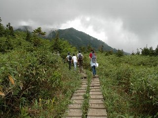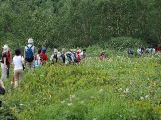 天気に恵まれば、正面に白馬の大雪渓が見えるのですが本日は、ガスで見えない。