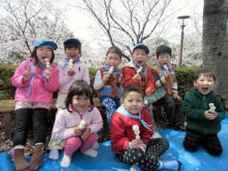ただ花見をするだけでは面白くないので、公園に出発する前にみんなで「三色団子」を作りました♪