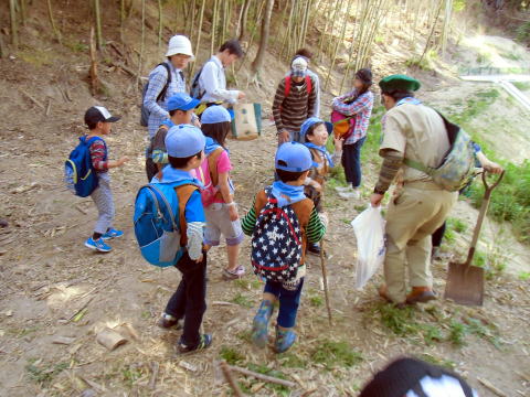 始めにたけのこ掘りをしたのですが、初体験のスカウトもいる中、急斜面に生えているたけのこでも何のその!一生懸命に採っていました(*^-^*)