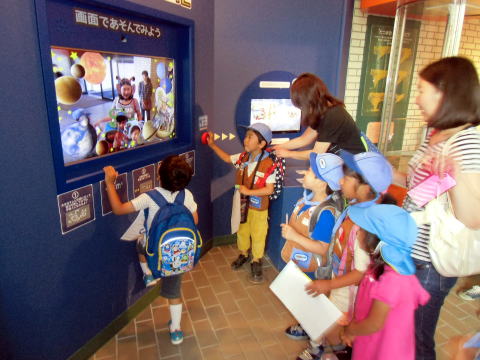 星や星座について係りの人の説明を聞いた後は、月や火星などの衛星・惑星について教えてくれるアニメを見ました♪