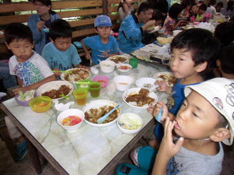 遊んだ後は夕食の準備。今晩のメニューは「カレー」と「フルーツポンチ」☆