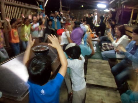 みんなの前でスタンツをし、団委員長が気に入ったらマシュマロをもらえるシステム・・・