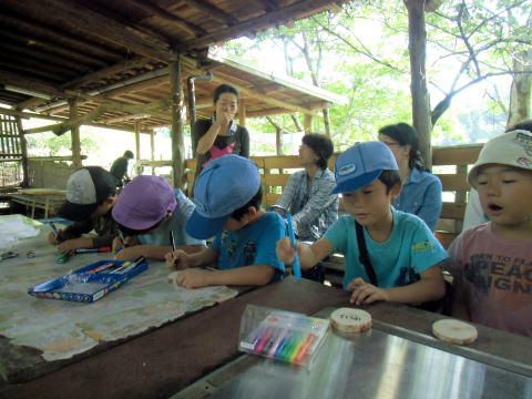これを大きな丸太に打ち付けてトーテムポールを作ったんだけど、ビーバーは帰る時間になったので完成品は見れませんでした。