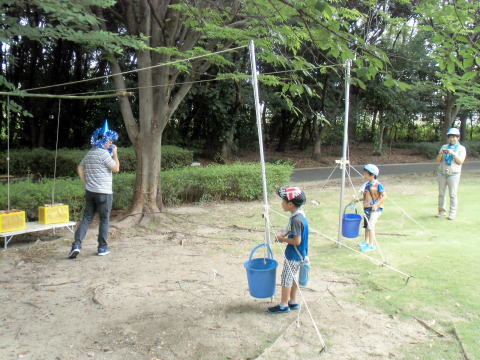 今回は「水」をテーマに「あめふらし島」(魚釣り)・「鬼ヶ島」(バケツに水入れリレー)