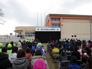 加木屋小学校で今度新しくオープンする公園、御雉子山公園(仮)の記念式典があり