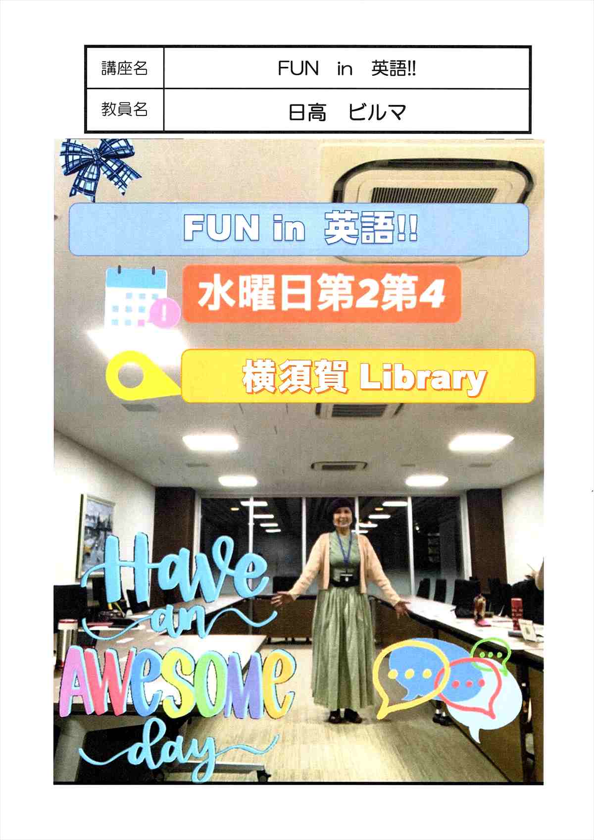 | 13 | FUN in 英語 !! | 日高ビルマ | 4/8・4/22・5/13・5/27・6/10・6/24・7/8・7/22・8/26・9/9 | 水 | 10:00~11:30 | 横図 | 10 | B | ¥2,600 | 20 |