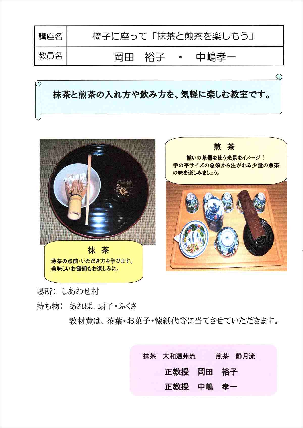 | 189 | 椅子に座って「抹茶と煎茶を楽しもう」 | 岡田裕子 中嶋孝一 |
