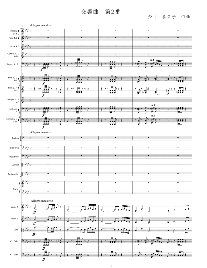 金井喜久子 / 交響曲第2番 (1947) / 第1ページ