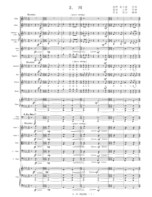 合唱組曲「水のいのち」小管弦楽伴奏版 (荒谷俊治・編曲/2012.7完成)