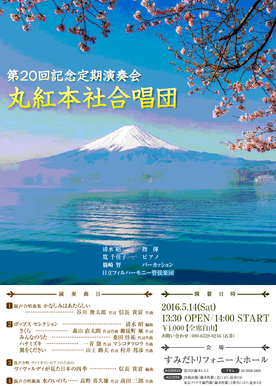 上演作品= 混声合唱組曲「ひたすらな道」、「山形民謡によるバラード」