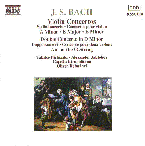 わが西崎崇子さんが、1989年にスロヴァキア・フィルのピックアップメンバーによるカペラ・イストロポリターナと共に録音したバッハのヴァィオリン協奏曲集である。過日行なわれた名古屋・今池のピーカンのバーゲンで超特価で入手したもので、レスピーギが編曲した「ヴァイオリン・ソナタホ短調BWV.1023」が入っていたので、つい触手が伸びた次第。