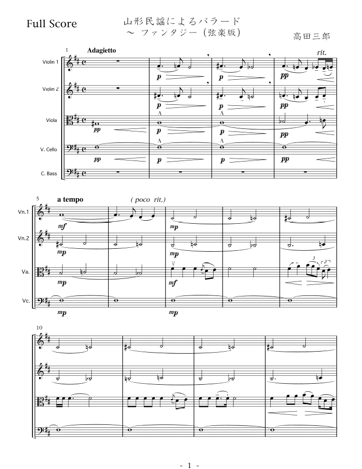 作曲者自身の編曲による弦楽合奏版/冒頭ページ