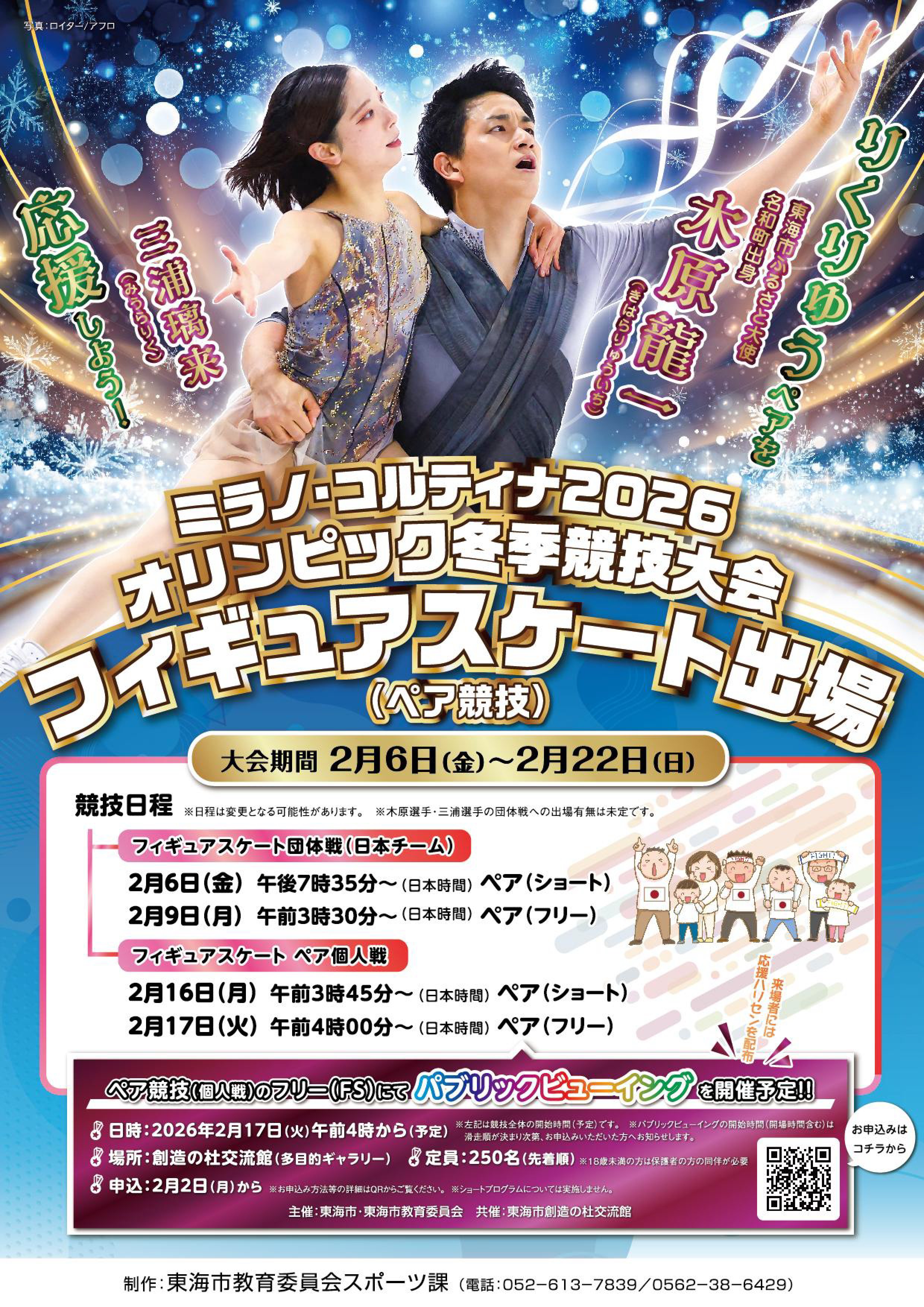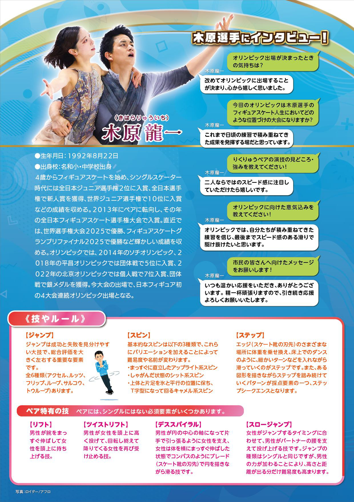 いよいよ始まったミラノ・コルティナ2026オリンピックに、東海市ふるさと大使の木原龍一選手が「りくりゅうペア」でフィギュアスケート・ペア競技に出場します☺
