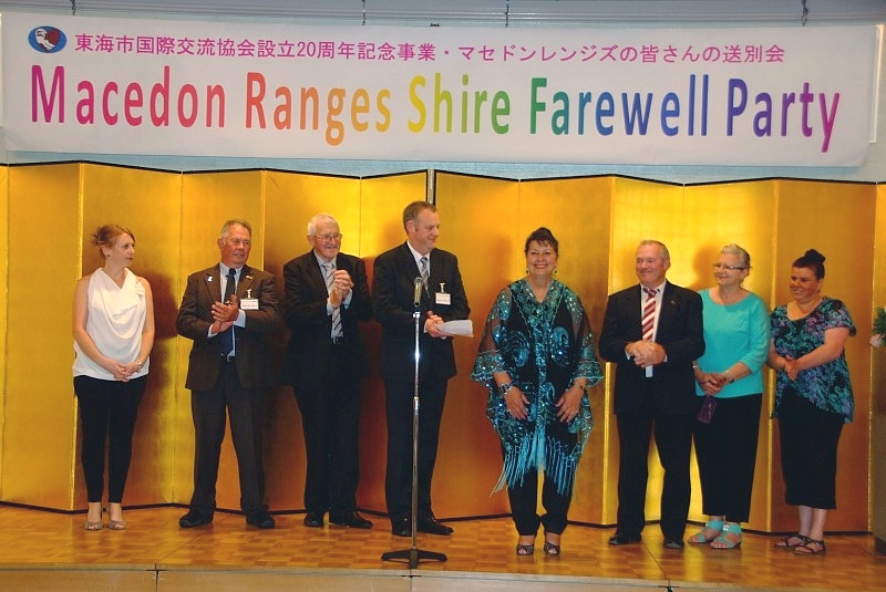 平成25年9月30日、20周年記念事業のため、 マセドンレンジズからお越しいただいた市長はじめ 9名の方々のご帰国にあたり、協会主催の歓送会を開催しました。