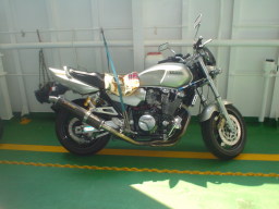 サイドスタンド、ローギヤでこんな感じで 固定されます。 波も小さく特に動くことは有りません。 |