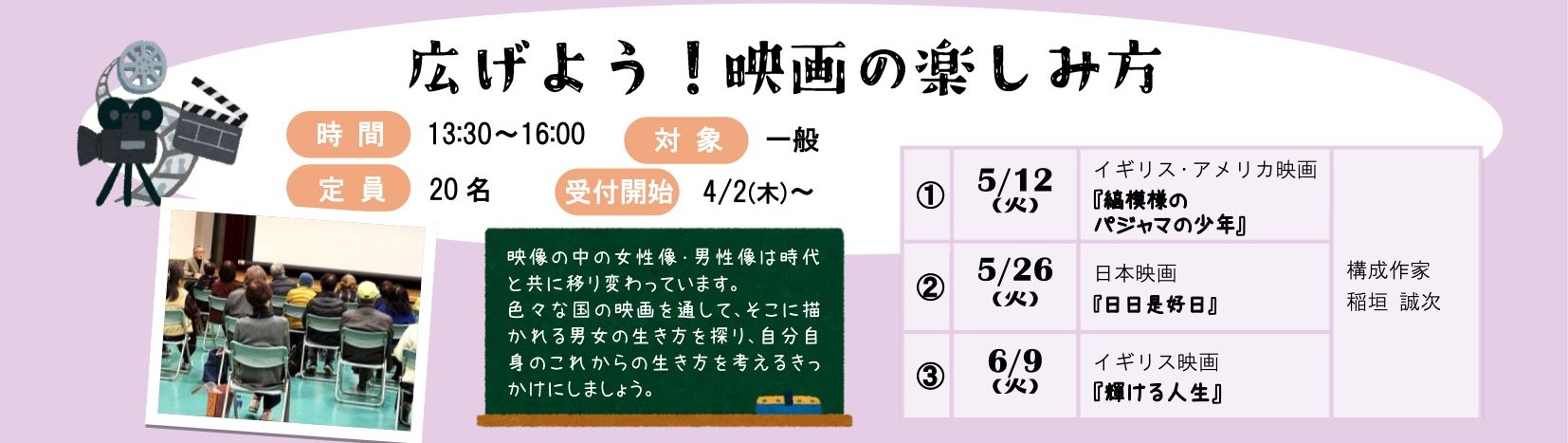 色々な国の映画を通して、そこに描かれる男女の生き方を探り、自分自身のこれからの生き方を考えるきっかけにしましょう。
