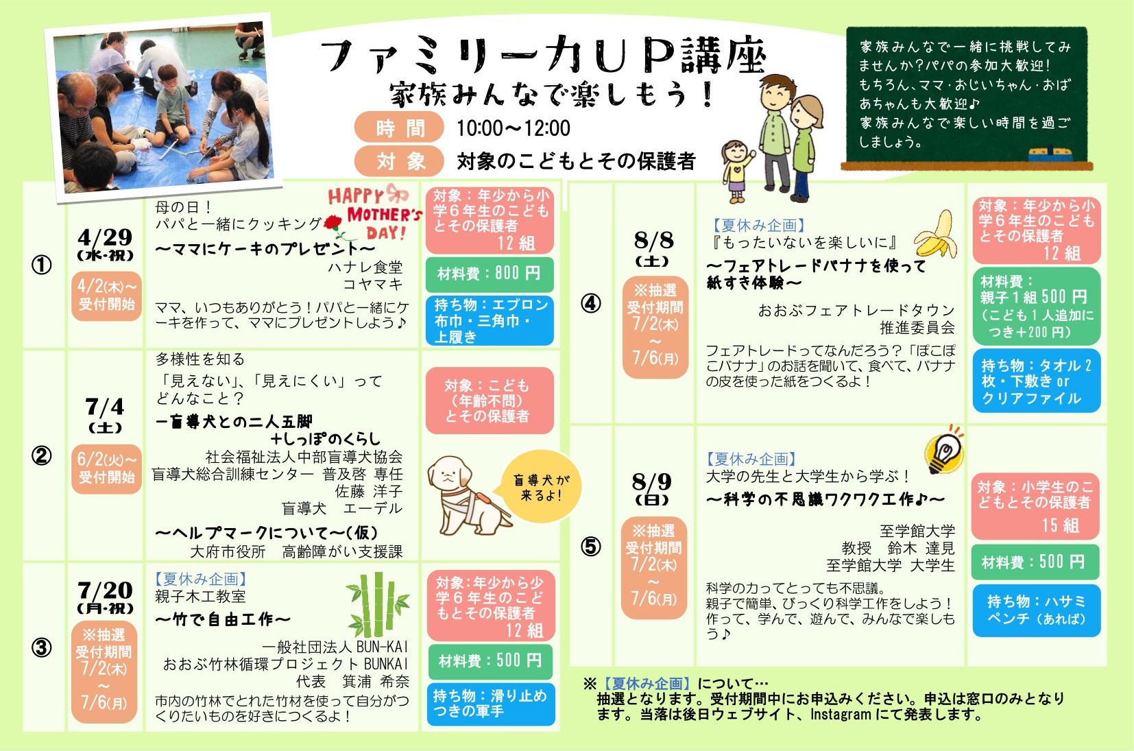 ※講師の都合や天候等により講座の日程や内容に変更が生じる場合もありますのでご了承ください。
